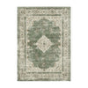 The Mystic Grove Vintage Rug blends timeless Persian patterns with rustic farmhouse charm. Its central medallion and intricate border echo the traditional Heriz rug style, infused with hues of Forest Green. Purposeful distressing enhances its warm, weathered appearance, adding to its rustic vibe. Designed for practicality, it's water-resistant, stain-resistant, and conveniently machine-washable. This rug seamlessly combines classic elegance with modern durability, making it suitable for both traditional and contemporary interiors seeking a touch of heritage and comfort.