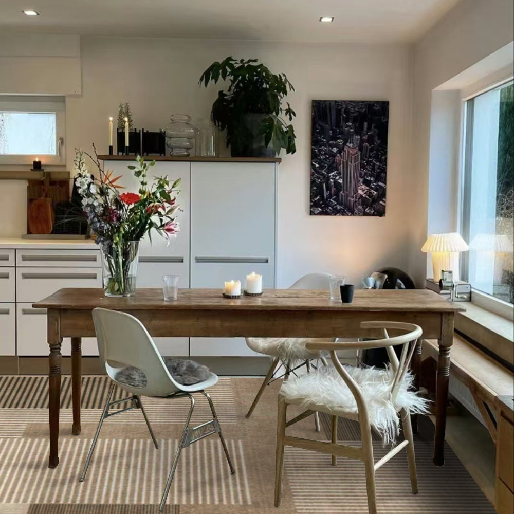 In the kitchen, a rug brings comfort and style to a high-traffic area. Opt for a durable, easy-to-clean rug that complements your kitchen’s design while providing a soft surface to stand on during meal prep.